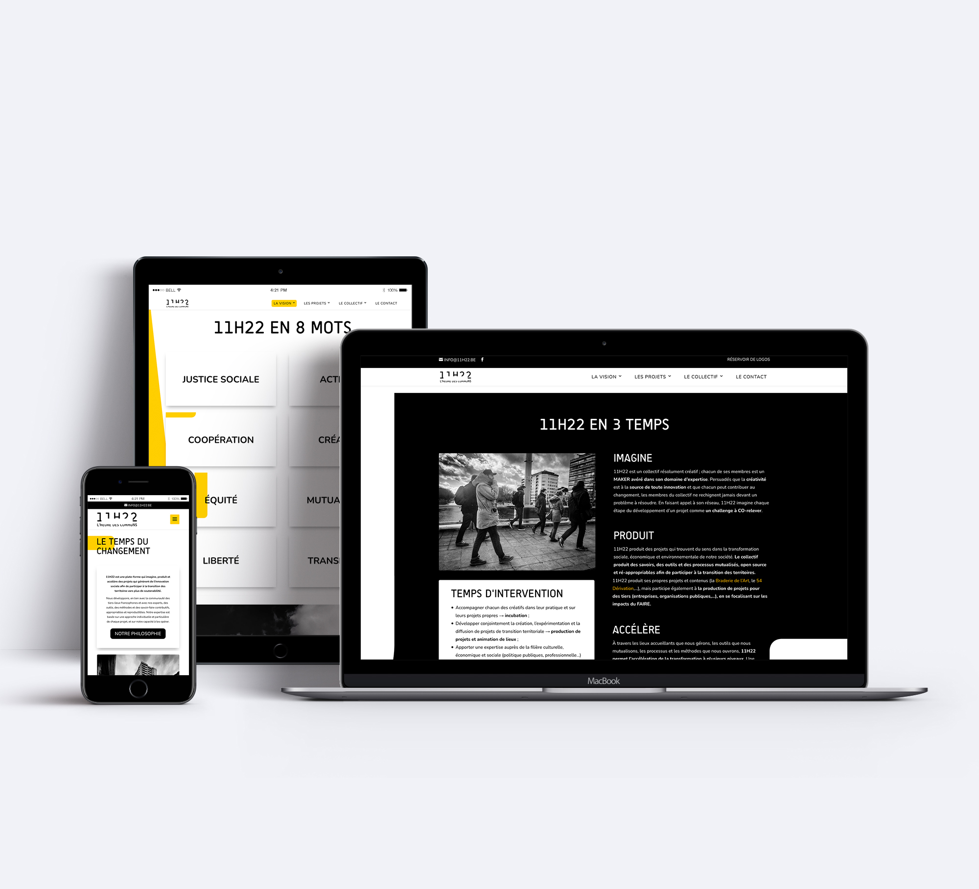Le logo de 11H22 en pensé sur trois axes :